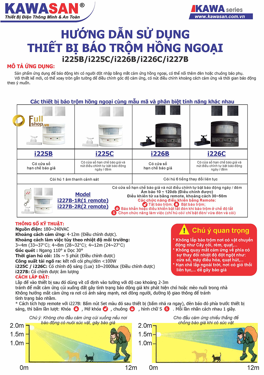 Báo động độc lập cảm ứng hồng ngoại báo khách, báo trộm tại chỗ (có cửa sổ chống báo động giả) Kawasan I226B
