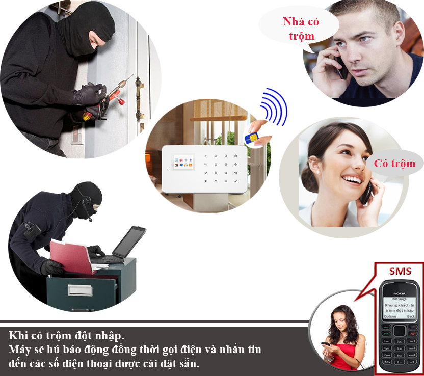 - Lưu được 6 số điện thoại cần báo và 6 số điện thoại cần gửi tin nhắn.