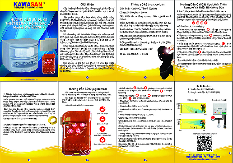 Bộ báo động báo trộm 3 vị trí cảm ứng chuyển động và 2 điều khiển tắt mở từ xa Kawasan I227B-2R-2PS01-AL03