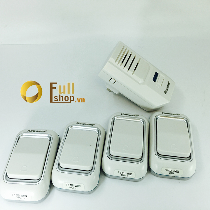 Bộ sản phẩm bao gồm 4 nút nhấn và 1 chuông không dây