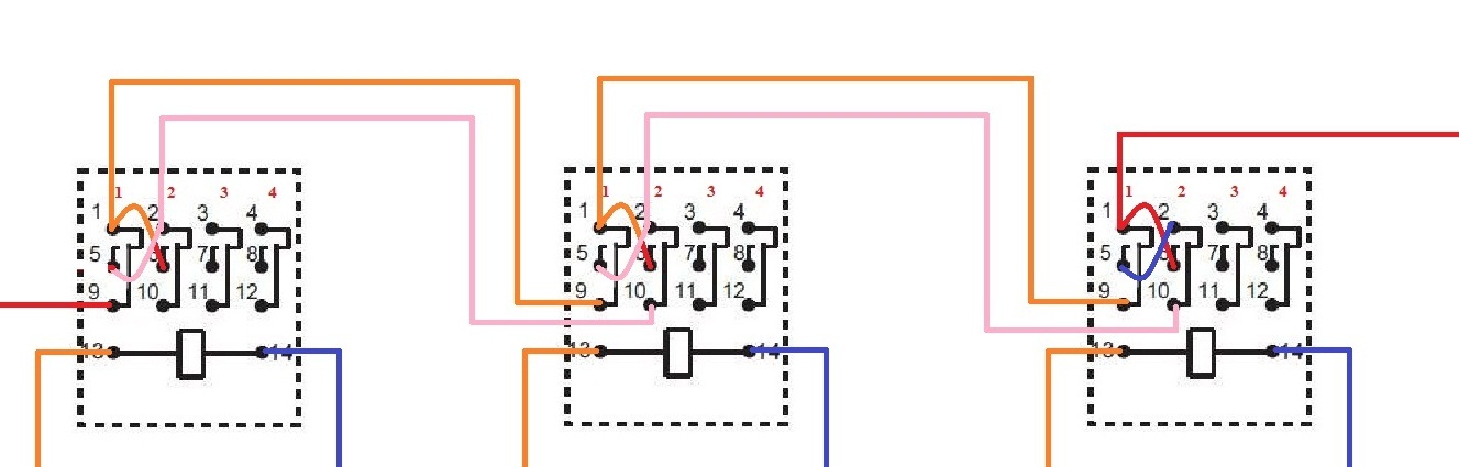 Từ 2 nguyên tắc trên ta đã tạo được sơ đồ đấu cho công tắc 3 vị trí kết hợp với điều khiển từ xa.