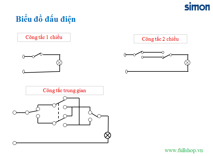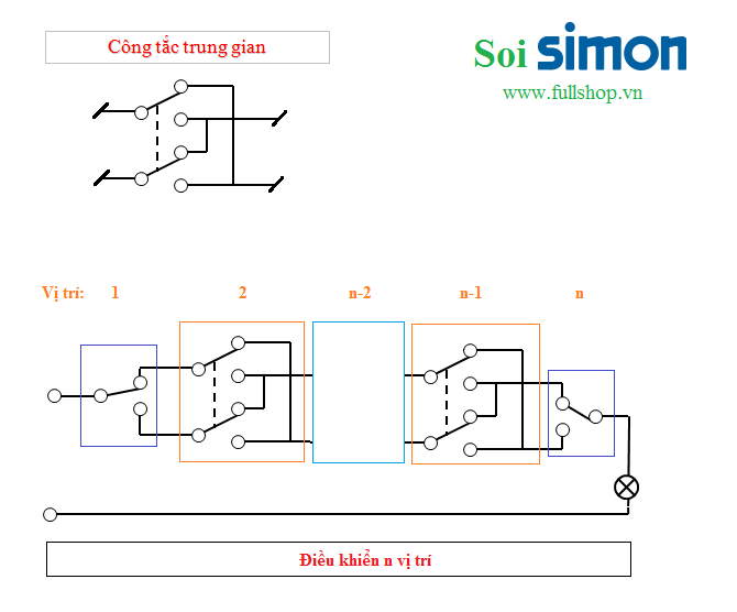 Sau đây là sơ đồ đấu nối công tắc cho 3 vị trí: