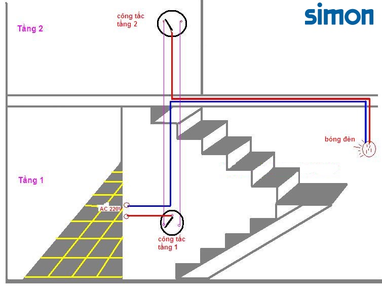 Sơ đồ đấu Công tắc cầu thang: