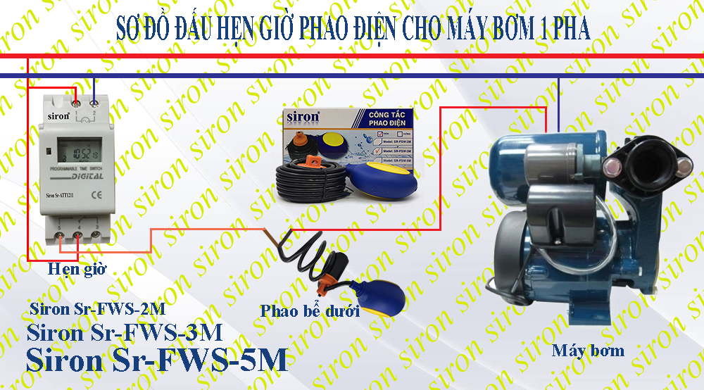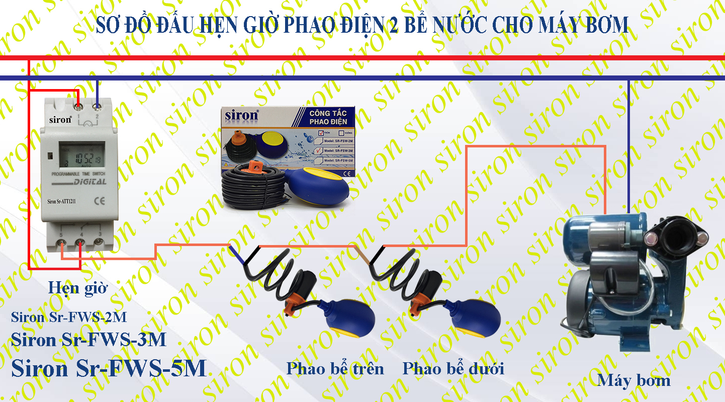 5. LẮP ĐẶT PHAO ĐIỆN CHO MÁY BƠM NƯỚC < 350W CÓ CHỨC NĂNG HẸN GIỜ.