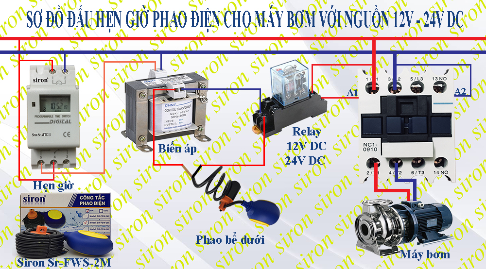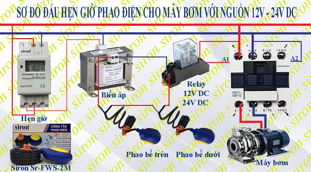 8. LẮP ĐẶT PHAO ĐIỆN CHO MÁY BƠM NƯỚC SỬ DỤNG NGUỒN 12V-24V CÓ CHỨC NĂNG HẸN GIỜ.