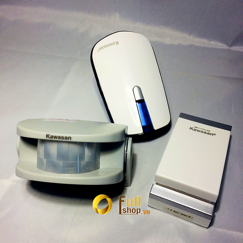 Sản phẩm gồm có 3 bộ phận (nút nhấn chuông không dây, không pin, mắt cảm ứng không dây và chuông).