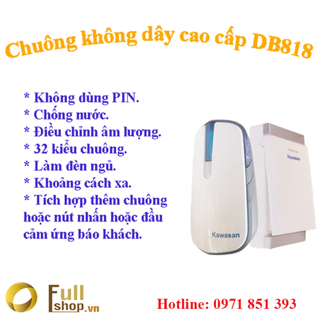 chuông báo khách không dây kết hợp chuông cửa không dây nút không dùng pin, chống nước Kawa I618-D81