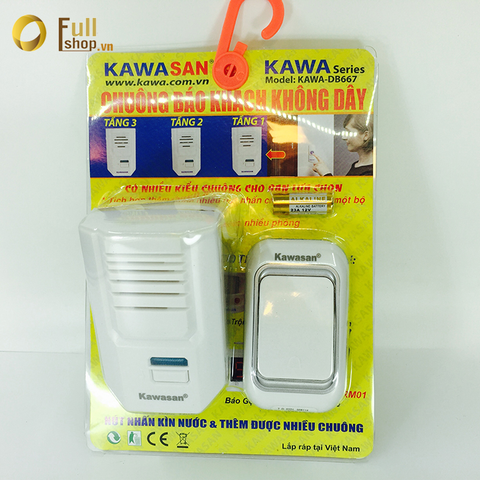 - Chuông cửa không dây Kawa DB667 dùng để lắp ngoài trời, có chống nước, có 32 kiểu chuông lựa chọn, thuận tiện cho việc lắp đặt và mang đi nhiều vị trí cần báo động trong gia đình.