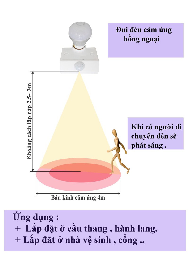 Đui đèn cảm ứng đèn tự bật sáng sáng khi có người lại gần và tự tắt sau thời gian hẹn