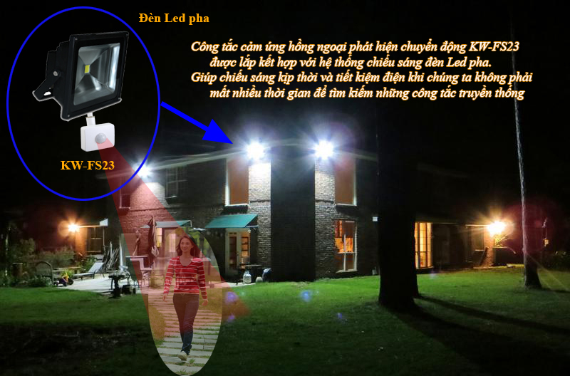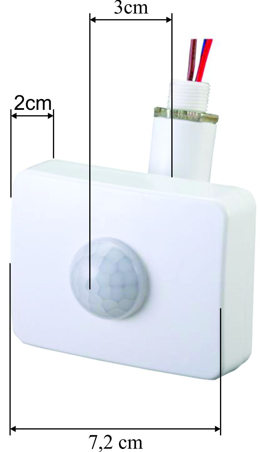 Đây là thiết bị cảm biến thân nhiệt chuyển động của con người. Tự động bật công tắc đèn khi có người di chuyển trong vùng quét, kết hợp với chức năng điều chỉnh được