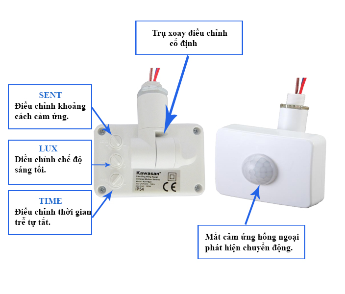 - Nút LUX :Điều chỉnh chế độ nhận biết môi trường sáng hay tối để kích hoạt chế độ cảm biến hồng ngoại: