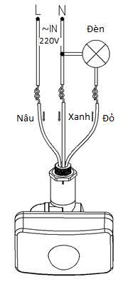 - Kết nối dây nguồn và tải cho cảm ứng như sơ đồ trên ( Teminal N và L đấu vào nguồn điện 220v ,N và L' ra đèn)