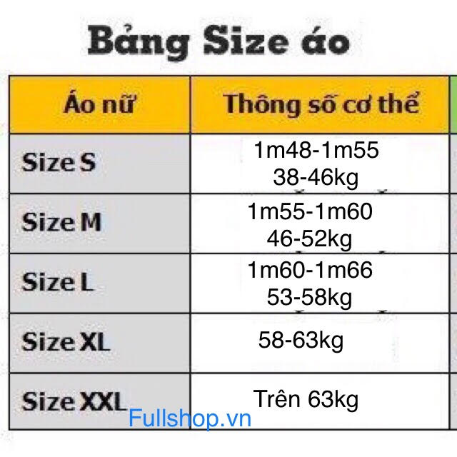 Các bạn chọn size theo thông số bên dưới giúp nhé.