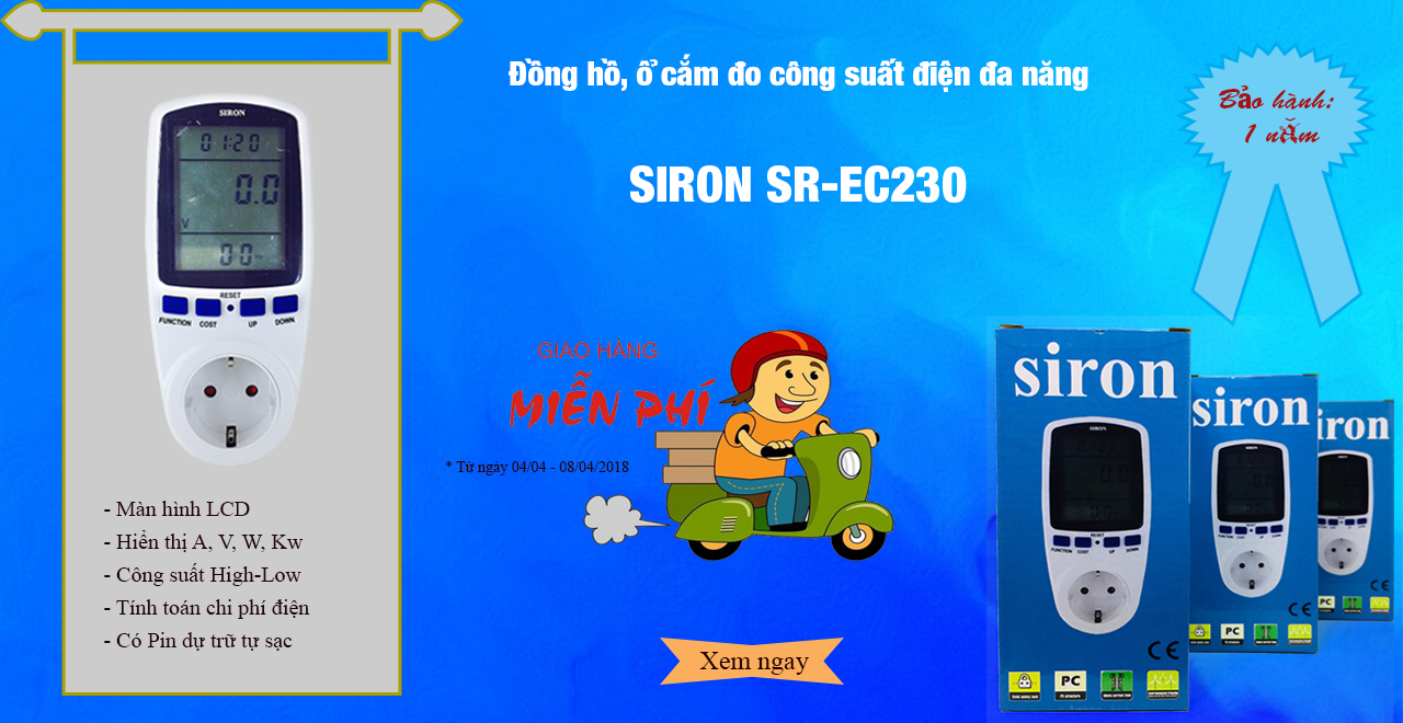Ưu đãi đặc biệt từ Siron dành riêng cho sản phẩm Đồng hồ đo công suất, ổ cắm đo điện năng đa năng Siron SR-EC230.