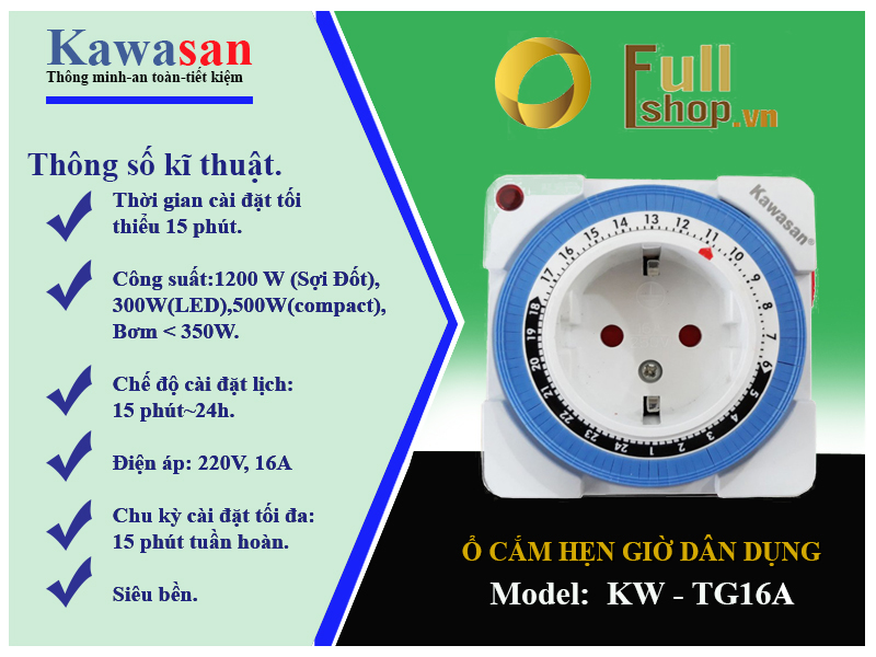 HƯỚNG DẪN SỬ DỤNG Ổ CẮM HẸN GIỜ DẠNG CƠ KAWA TG16A