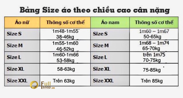 Có đầy đủ size S, M, L, XL, 2XL nam nữ (chi tiết tham khảo bảng size bên dưới)